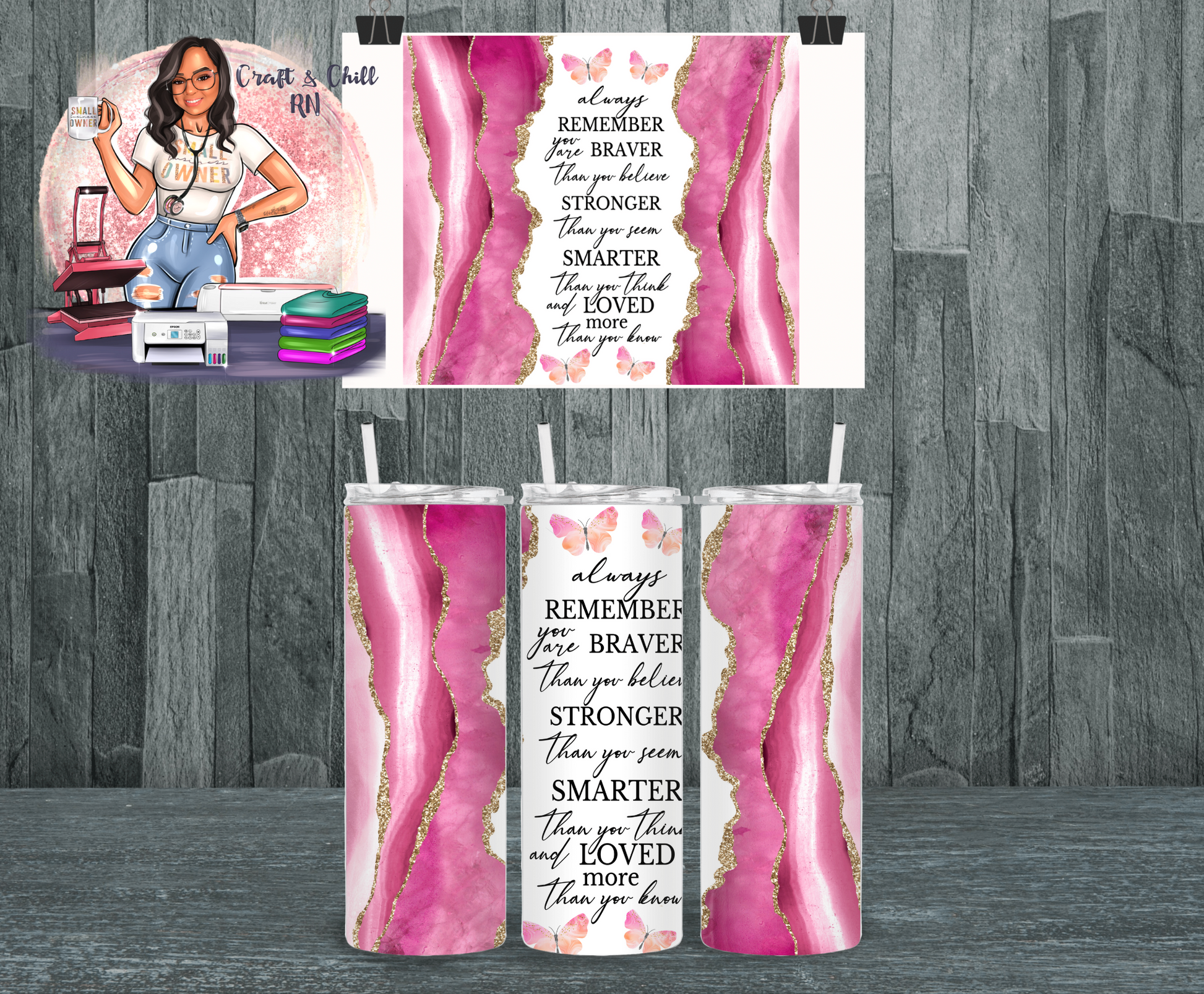 20 Oz Skinny Tumbler. Slide open-close lid. Straw included.