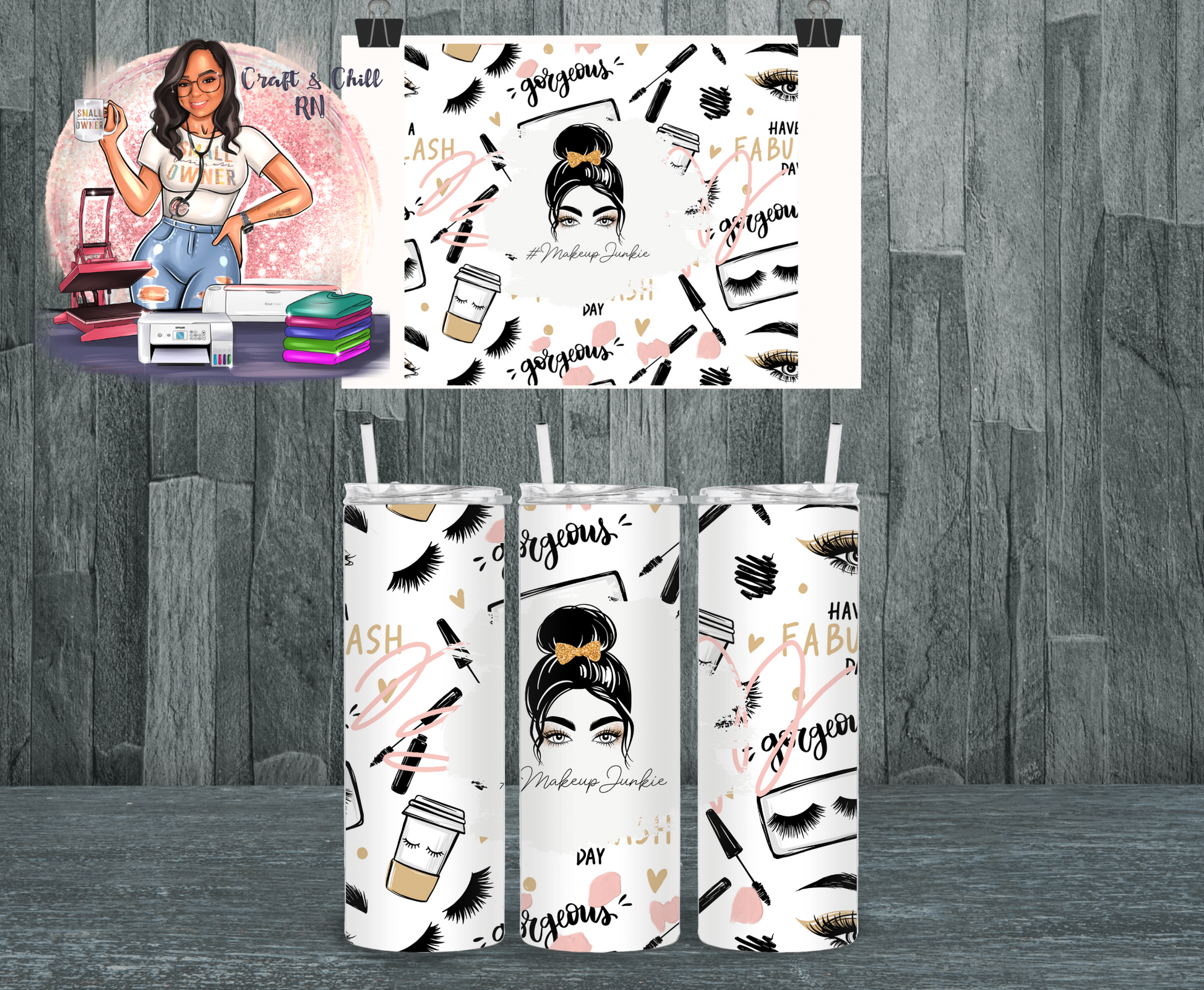 20 Oz Skinny Tumbler. Slide open-close lid. Straw included.