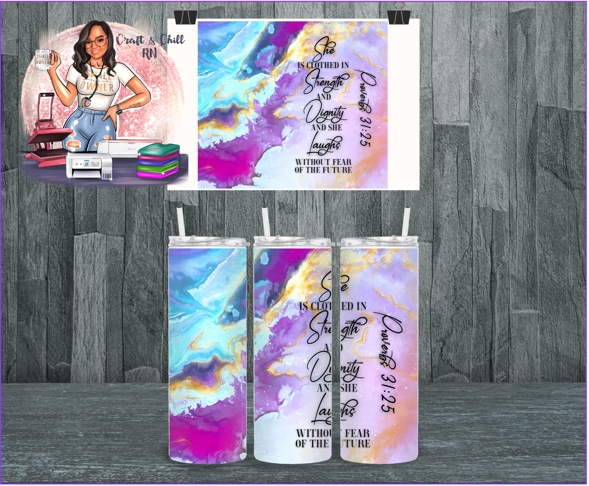 20 Oz Skinny Tumbler. Slide open-close lid. Straw included.