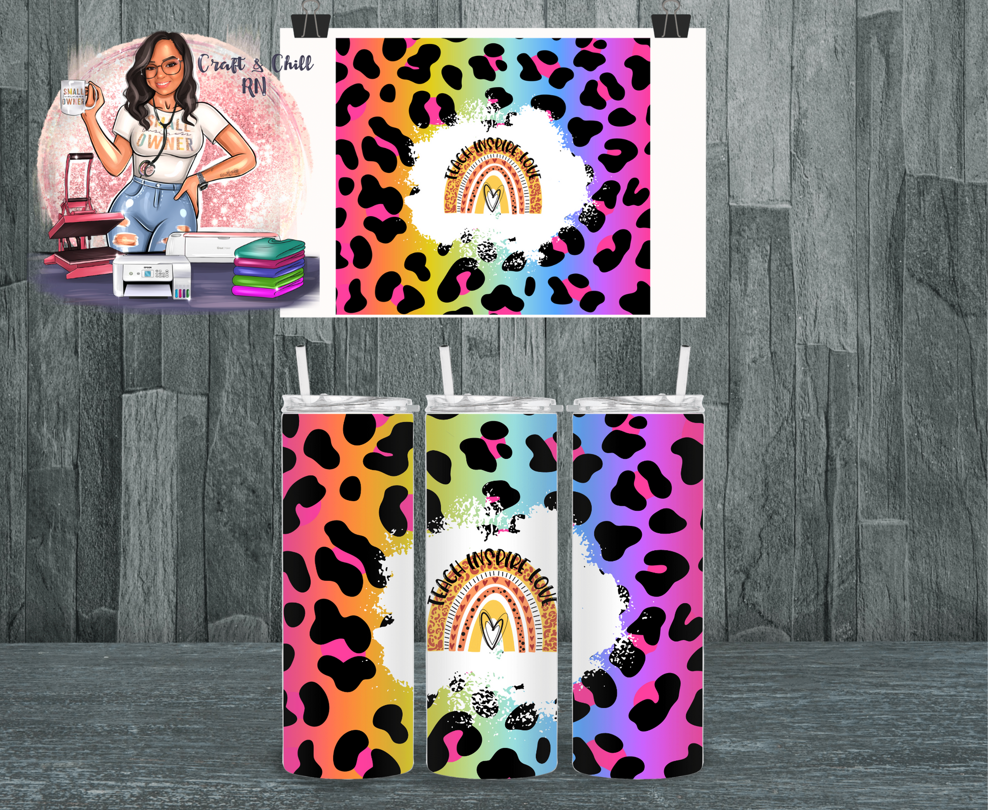Rainbow Leopard Teach Tumbler